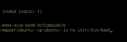 Надо поменять "ro" на "rw init=/bin/bash", вот что должно получиться: